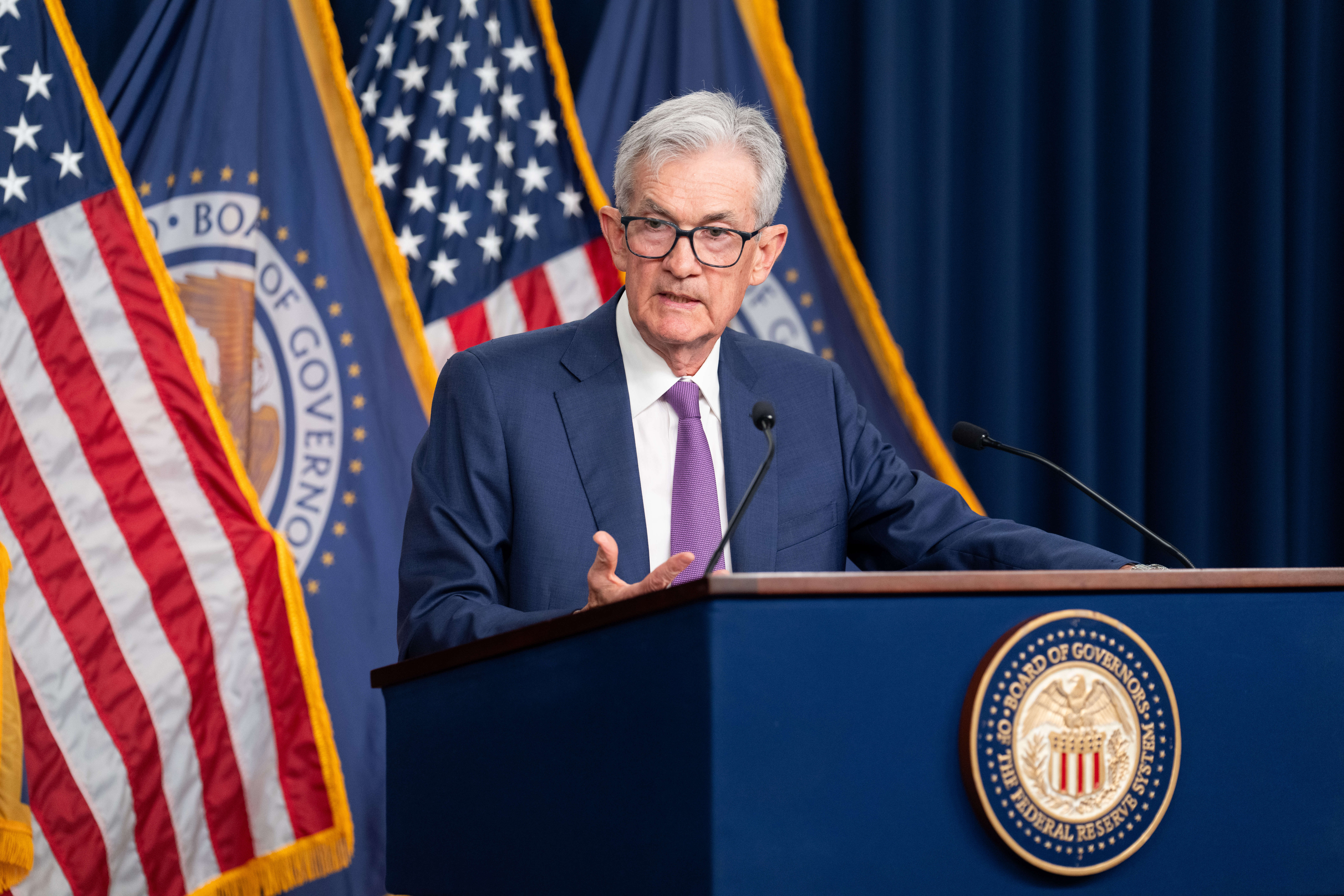 5月1日,好意思国联邦储备委员会主席鲍威尔在华盛顿出席记者会。新华社记者刘杰摄
