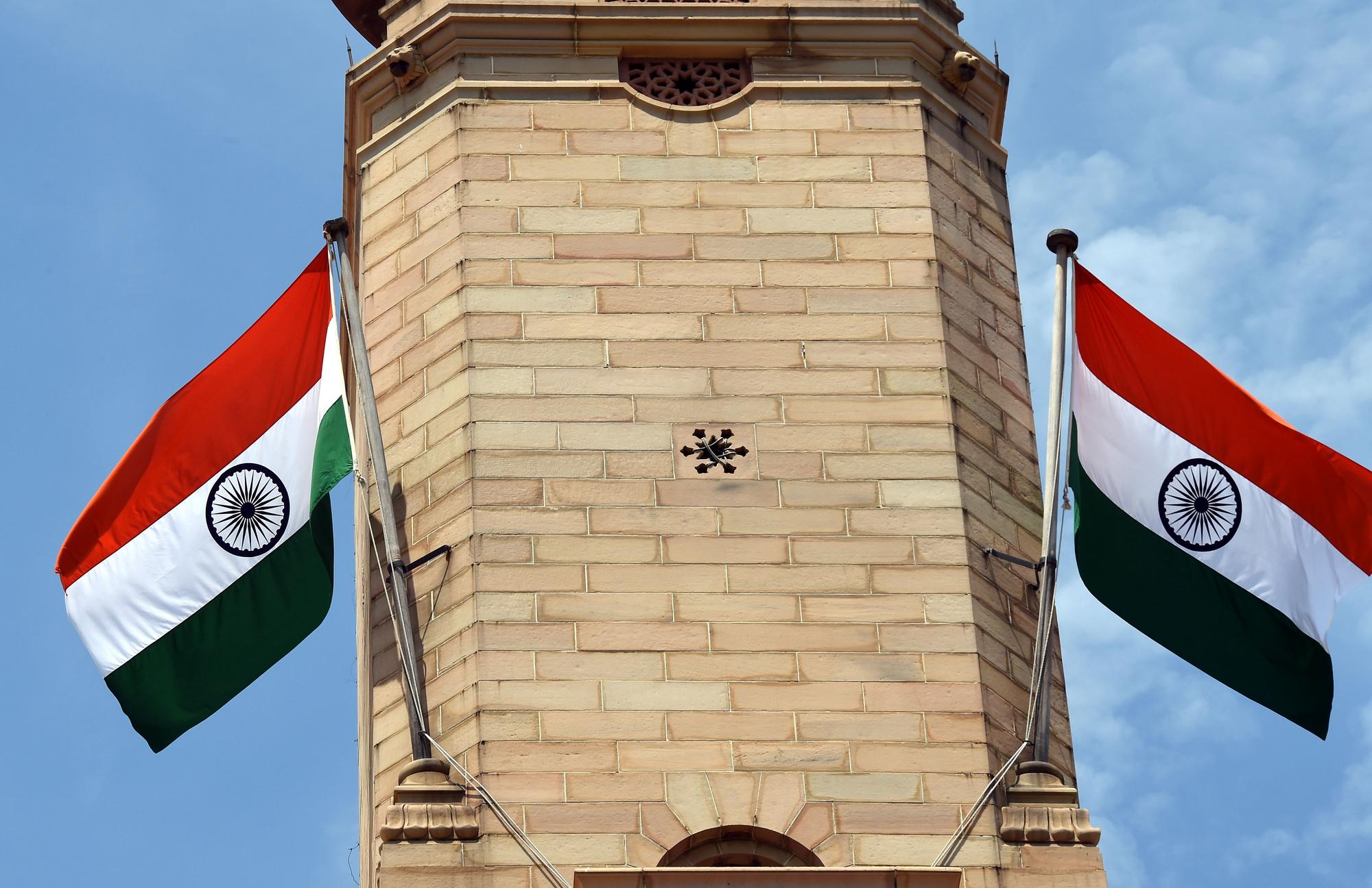 这是2019年8月8日在印度齐门新德里拍摄的印度国旗。新华社记者张迺杰摄
